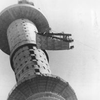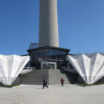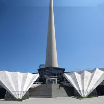 タワーは高さ250mの鉄筋コンクリート製の立坑で、頂部に球体があり、赤と白のスチール製のマストがある。 軸に沿って120の窓が開けられた。 当初の高さは365mだったが、1995年から96年にかけてアンテナが変更され、368.02mとなった。