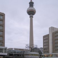 ドイツ民主共和国のための強力な放送施設にふさわしい場所について長い議論を重ねた結果、1964年の国家評議会議長ヴァルター・ヴルブリヒトは、テレビ塔(Fernsehturm)の建設場所を西ベルリンからも見えるアレクサンダー広場に決定した。 タワーは1969年10月3日に落成した。