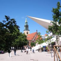 アレクサンダー広場は、ドイツ・ベルリンの中心地のひとつであり、ナイトライフ、エンターテイメント、交通、観光ネットワークにおいて最も賑やかで重要なエリアのひとつである。 周囲には「赤い市庁舎」と呼ばれるローテス・ラートハウスがあり、ベルリン旧市街の数少ない名残である。 この地域に最も大きな被害をもたらしたのは、第二次世界大戦中の連合国軍と赤軍による空襲だった。