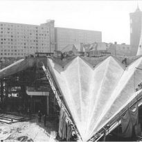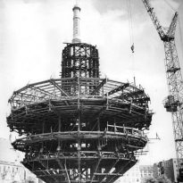タワーの建設には、当時このような高さのプロジェクトで唯一可能だった「クライミング」方式が採用された。 内側の鉄骨構造は、内側の軸を中心に発達する外側の鉄筋コンクリート構造よりもわずかに速く成長していた。 塔の軸線は上昇するにつれて細くなり、直径16mから始まって9mまで細くなり、5つのセクションに分かれている。