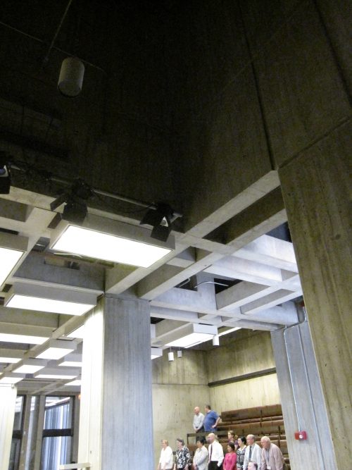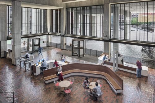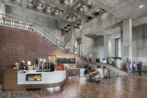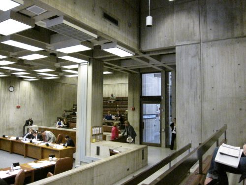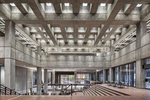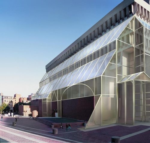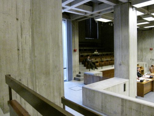当時、公共の建物は記念碑的であるべきだと考えられていたため、建築家たちは最初の大規模プロジェクトで意思表示をしたかったのだ。 この設計は、革新的であると同時に時代を超越したものであることを意図しており、古典的な建築の要素や、ル・コルビュジエによる サント・マリー・ド・ラ・トゥーレット修道院のような、大きな張り出しとむき出しのコンクリート構造という偉大な近代的作品を参考にしている。 建築家たちはまた、中世やルネサンス期の古代イタリアのタウンホールや、19世紀ボストンの 花崗岩建築にも目を向けた。