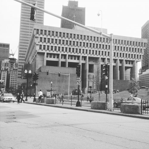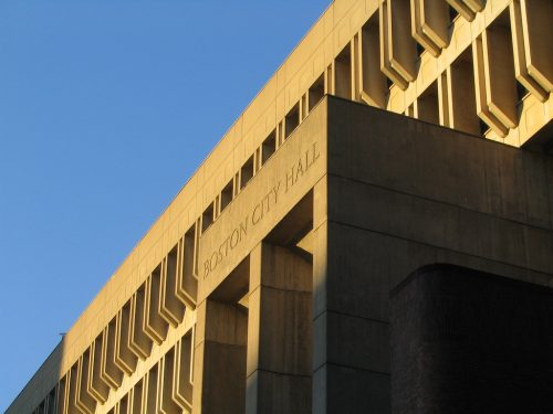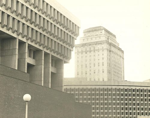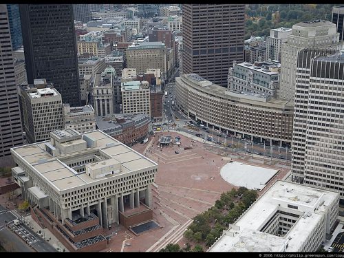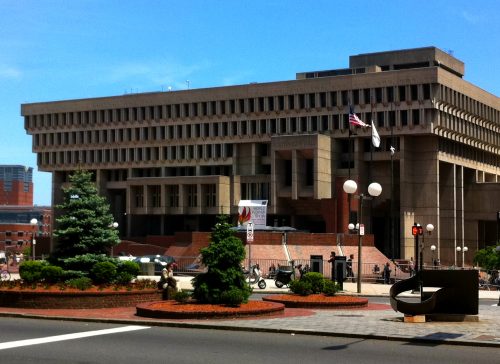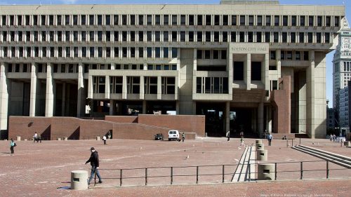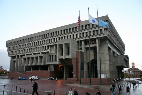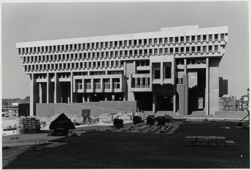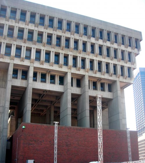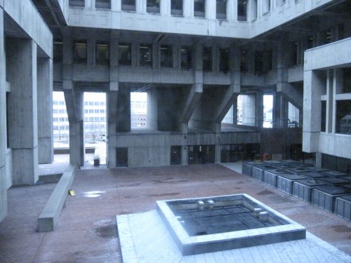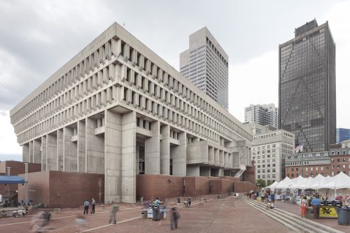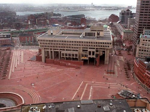 カルマン、マッキネル&ノウルズ事務所が設計したこのブルータリズム様式の建物は、1865年に建てられた旧ボストン市庁舎の代わりとして1968年に建てられた。 ある人は傑出した建物とみなし、またある人は大失敗とみなした。