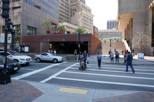 市庁舎広場は市庁舎の1階にあり、プレフロアとエントランスの役割を果たしている。 広場と1階は同じセラミック舗装で、この素材は広場の外周にある低層部の一部にも使われている。 公共スペースは様々な高さで開発され、地形の変化に対応し、コングレス・ストリートとケンブリッジ・ストリートをつなぐ役割を果たしている。