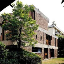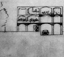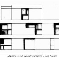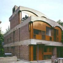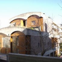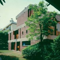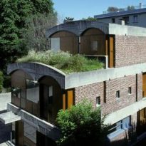 A “と “B “は別々に建てられるように設計され、1000平方メートルの敷地を共有し、駐車スペースのある地下室でつながっている。 これらは「ブルータリズム」スタイルの表現であり、モデュロールの原則に基づいている。