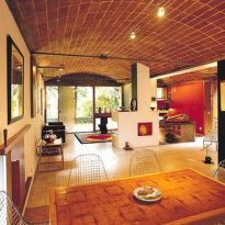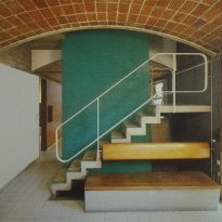 内装は、明るい塗装の壁、吹き抜けのレンガ造りの天井、磨きっぱなしの床など、同じ素材が並存している。 ル・コルビュジエは1920年代にはすでに、色が空間を変え、生理的反応を刺激し、感性に強い影響を与えることを理解していた。