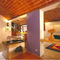 どちらの家も同じ空間寸法に支配されている。 クランチ 幅3.66メートルと2.26メートルの異なる縦方向の壁は、レンガ造りの耐力壁で覆われている。 金庫 カタルーニャ梁の断面は、梁のまぐさから2.26メートルの高さから始まる。 クランチ はそれぞれ金色の長方形と正方形で、家の行列である。