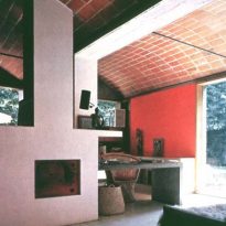 両家の1階では、階段と暖炉が機能的であるだけでなく、ほとんど彫刻的な装飾要素にもなっている。 深いファイヤー・ニッチと滑らかで傾斜した壁を持つ暖炉は、東欧の暖炉の特徴である斜めの暖炉を彷彿とさせる。