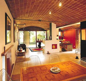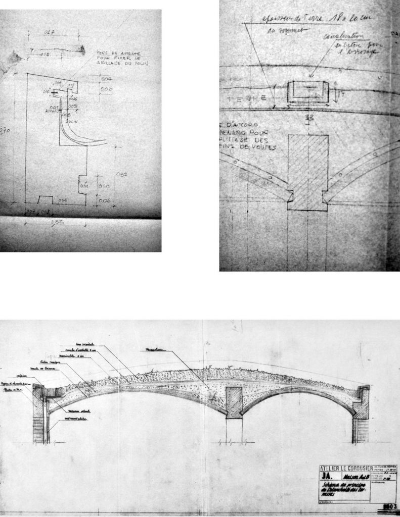 浅いコンクリートヴォールトは、センターリング・システムを使わずに敷き詰められた薄いレンガのフレームと対照的である。 これらのレンガは、その上の薄いコンクリート・ボールトのための恒久的な型として敷かれる。 横方向の鉄骨梁に支えられたコンクリートヴォールトは、床の長さに渡って連続する梁の上に載っており、この梁が重量を家屋を囲むレンガ造りの耐力壁に伝えている。 どちらの構造でも同じシステムが使われた。