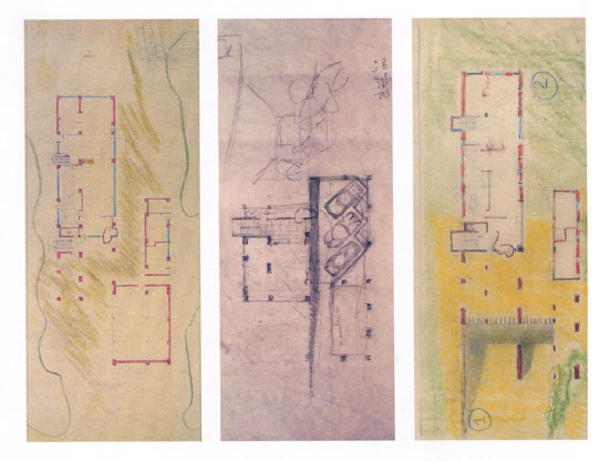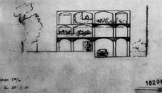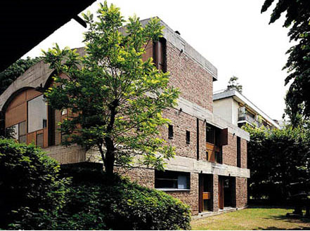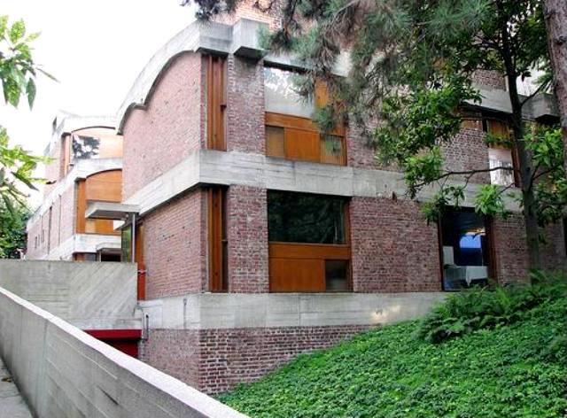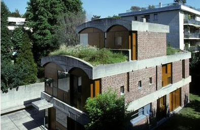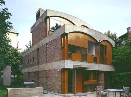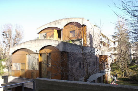 A “と “B “は別々に建てられるように設計され、1000平方メートルの敷地を共有し、駐車スペースのある地下室でつながっている。 これらは「ブルータリズム」スタイルの表現であり、モデュロールの原則に基づいている。