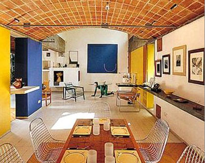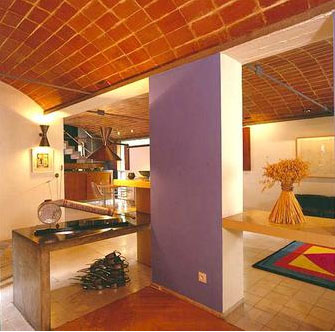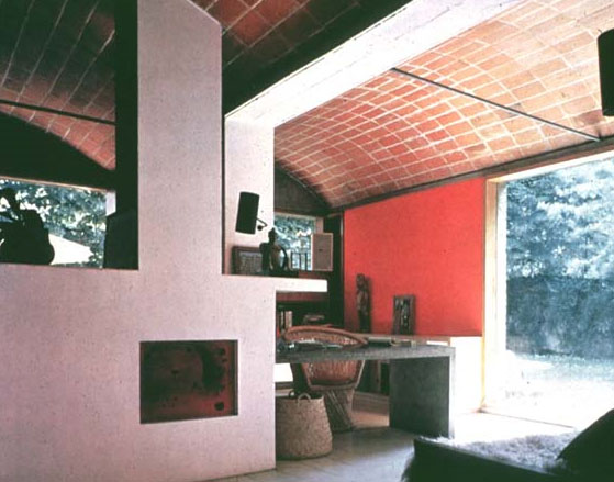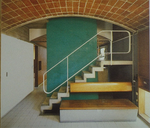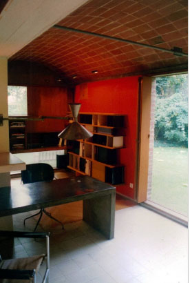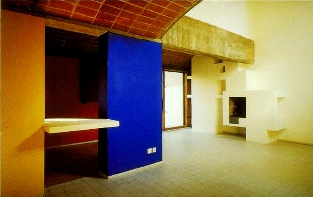 内装は、明るい塗装の壁、吹き抜けのレンガ造りの天井、磨きっぱなしの床など、同じ素材が並存している。 ル・コルビュジエは1920年代にはすでに、色が空間を変え、生理的反応を刺激し、感性に強い影響を与えることを理解していた。