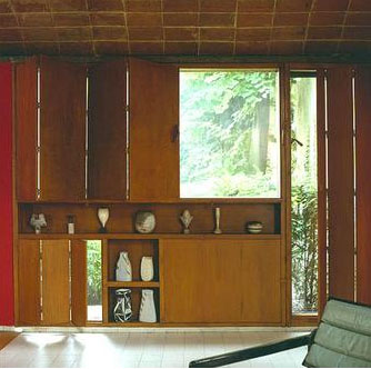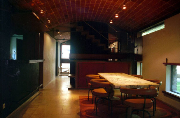 両家の1階では、階段と暖炉が機能的であるだけでなく、ほとんど彫刻的な装飾要素にもなっている。 深いファイヤー・ニッチと滑らかで傾斜した壁を持つ暖炉は、東欧の暖炉の特徴である斜めの暖炉を彷彿とさせる。