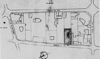 敷地は台形のブロックの中にあり、周辺道路に面した前面が小さい長方形の区画に分かれている。 メゾン・ジャウールが建設された当時は、一戸建て住宅が建ち並び、広い庭が各住宅と通りを隔てていた。