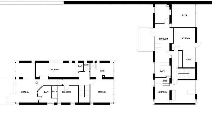 部屋は壁で仕切られているが、囲まれていないため、厳格な外観が隠している流動的な動きを可能にしている。 たくさんの窓や開口部から差し込む光は、特にベッドルームレベルで微妙なニュアンスを生み出している。