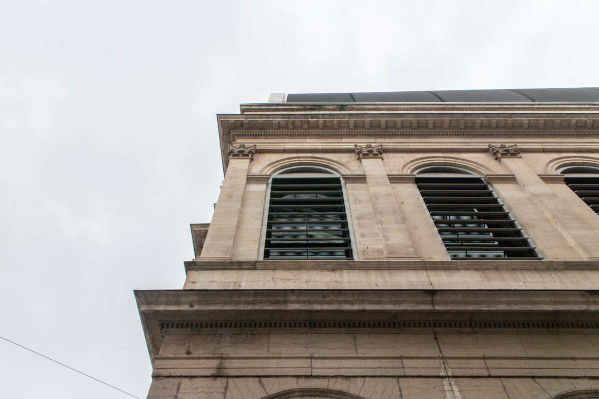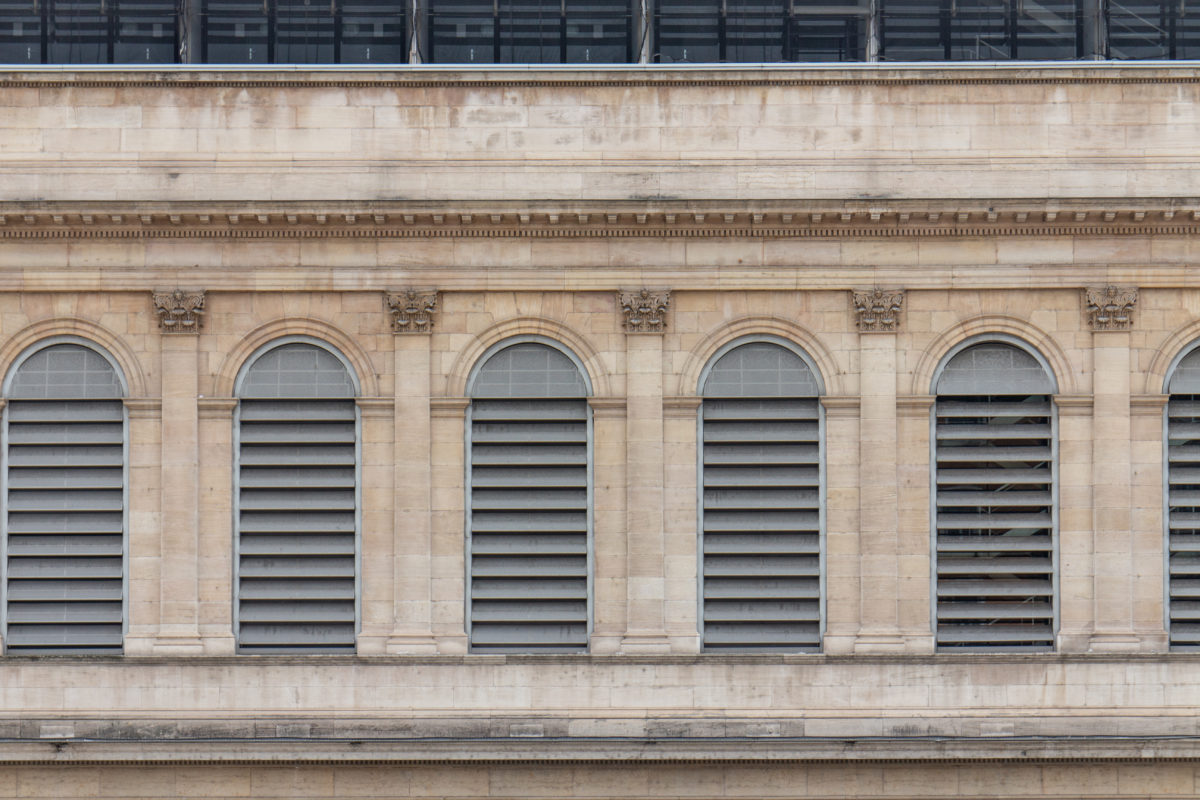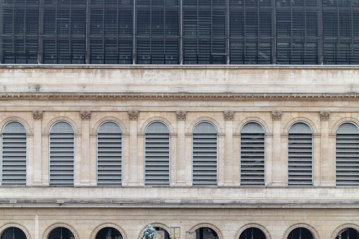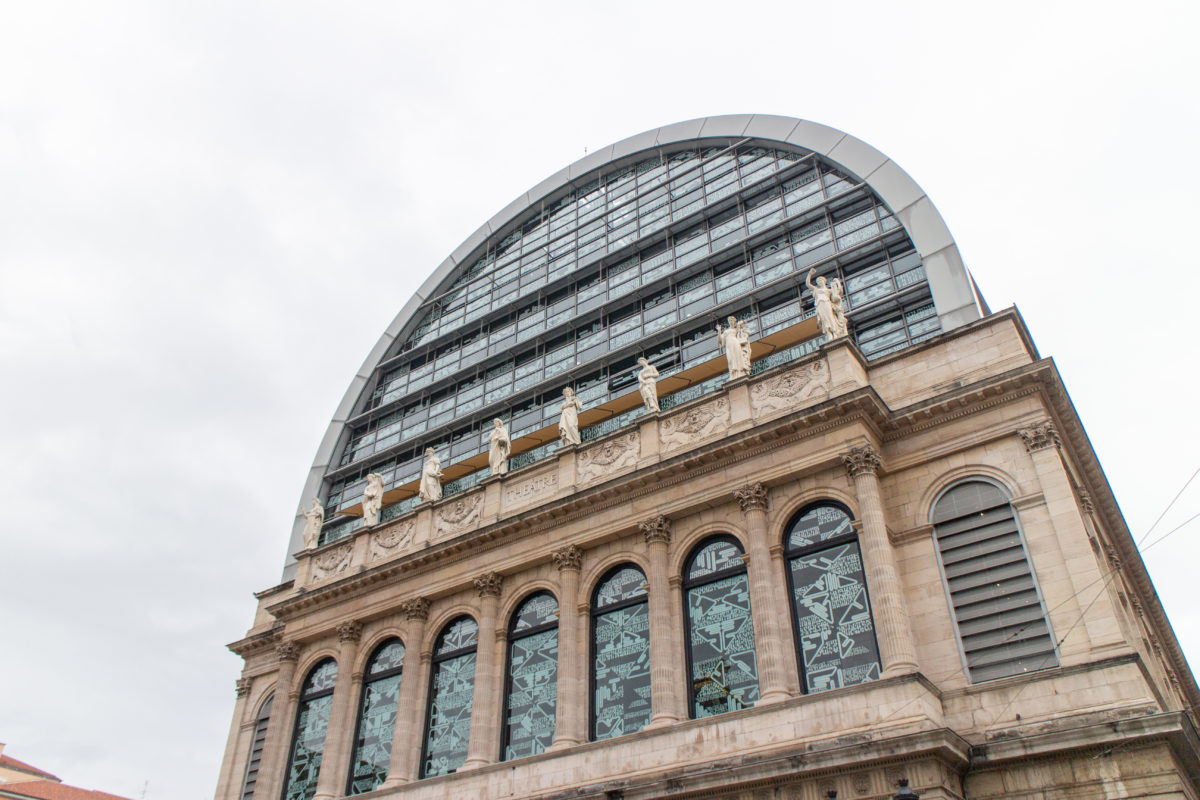 ヌーヴェルは 、この地域の都市的調和を維持するために、新古典主義の要素を残した。 ファサード、アーケード、ホワイエ、金箔の天井と壁は、19世紀のシンボルとして保存されている。 建築家はガラス張りの樽型丸天井を作り、元の建物の容積を3倍に拡大した。