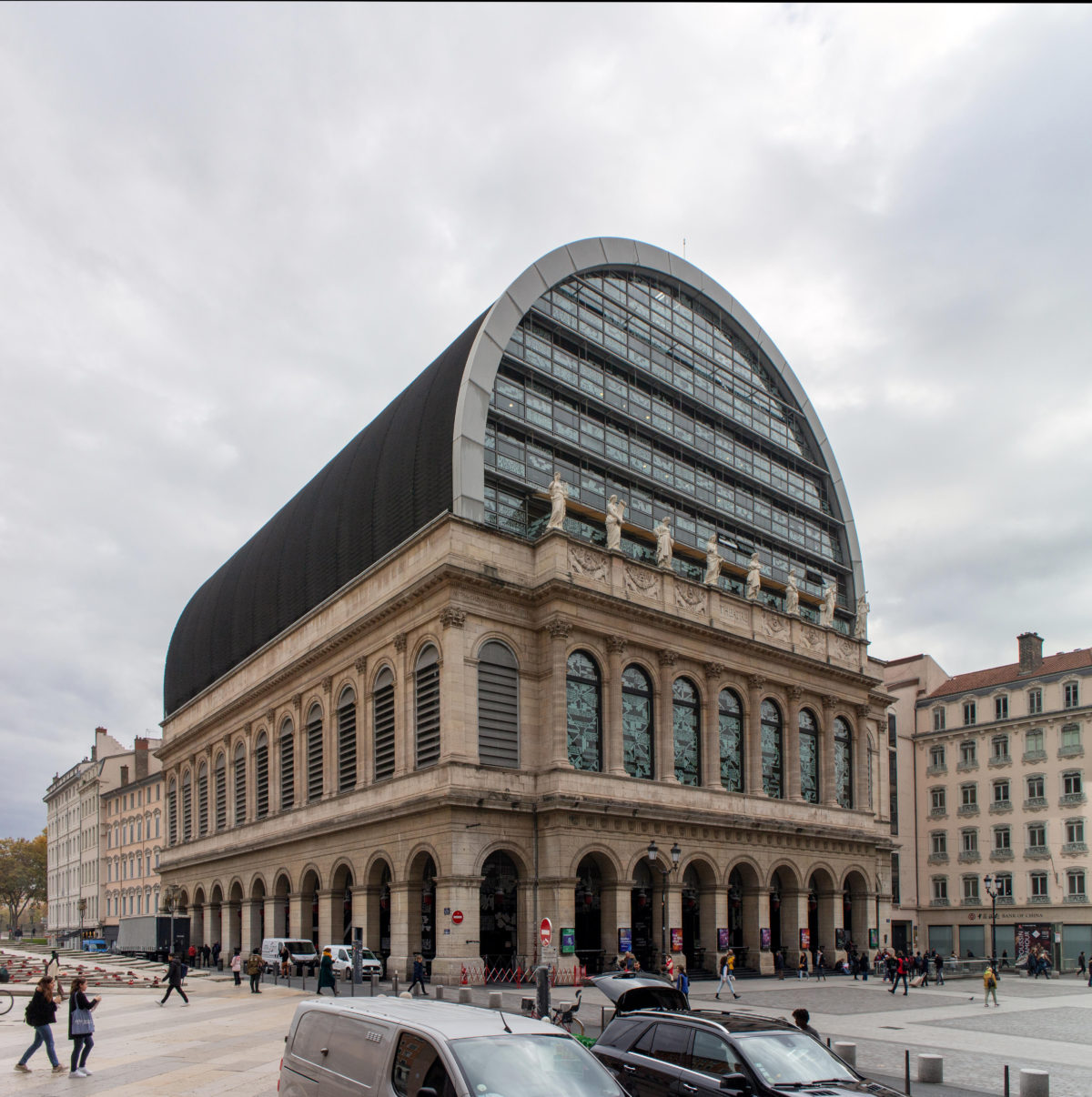 リヨンの歴史的中心部にあるオペラ座は、19世紀に建築家シュネヴァールとポレによって改築された。 1986年から1993年にかけて、フランス人建築家ジャン・ヌーヴェルによる改修工事が行われた。