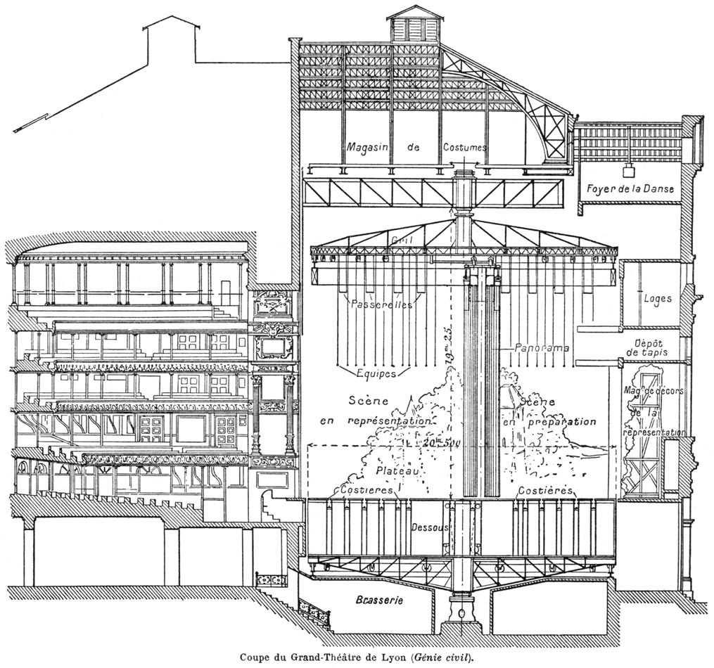 1756年、 リヨンで初めて、独立した建物の中に作られた劇場のひとつ、サン・クレール劇場が開場した。 設計はパリのパンテオンを設計したジャック・ジェルマン・スフロ。 1826年に火事で焼失した。