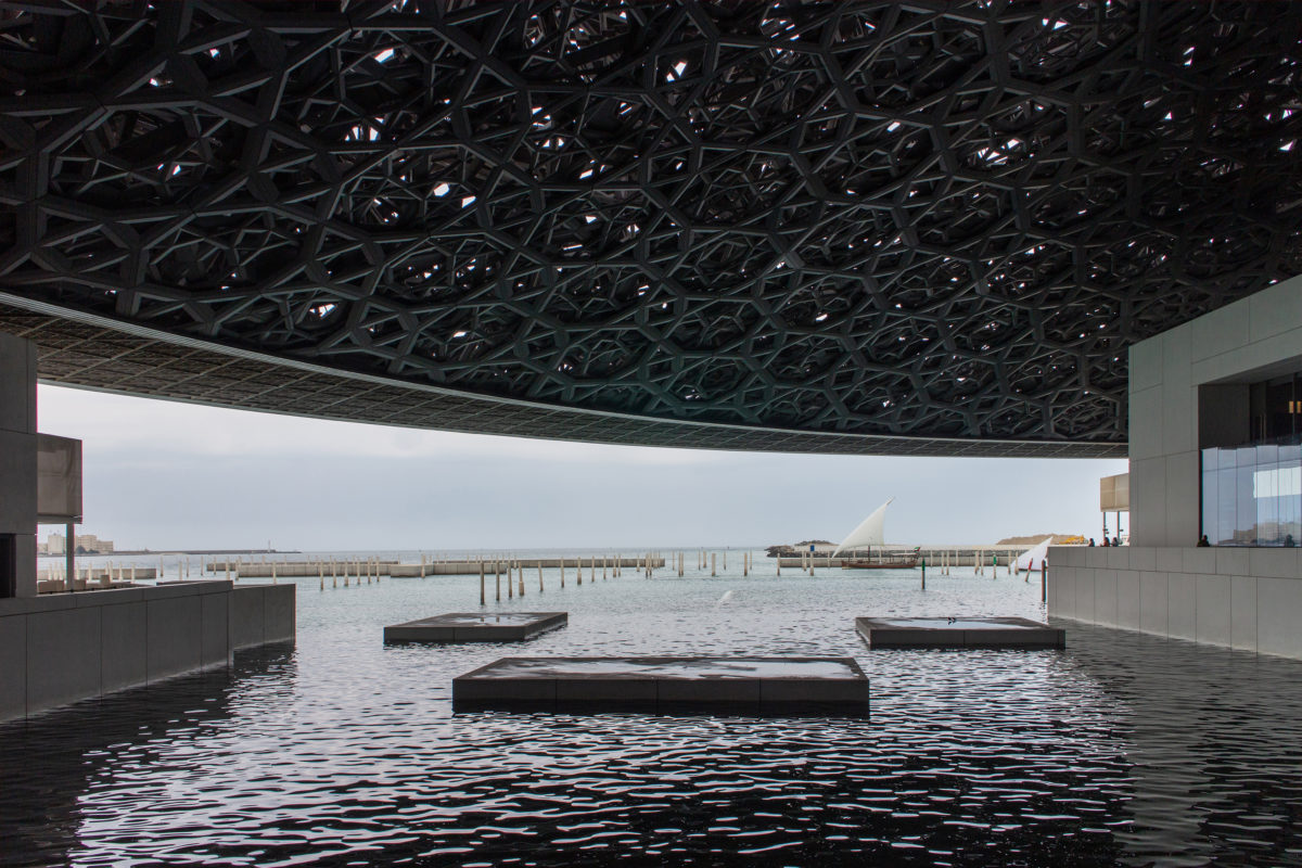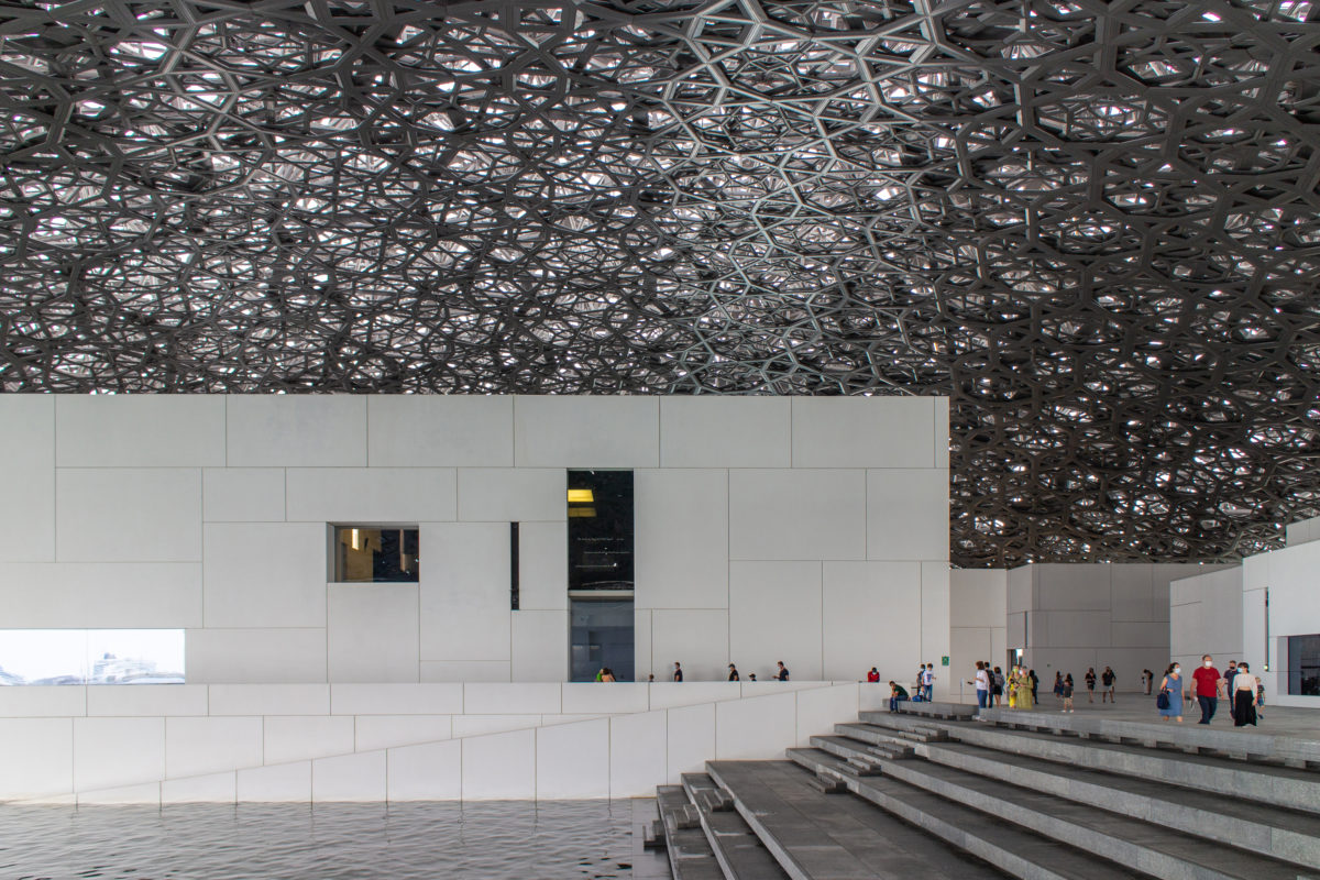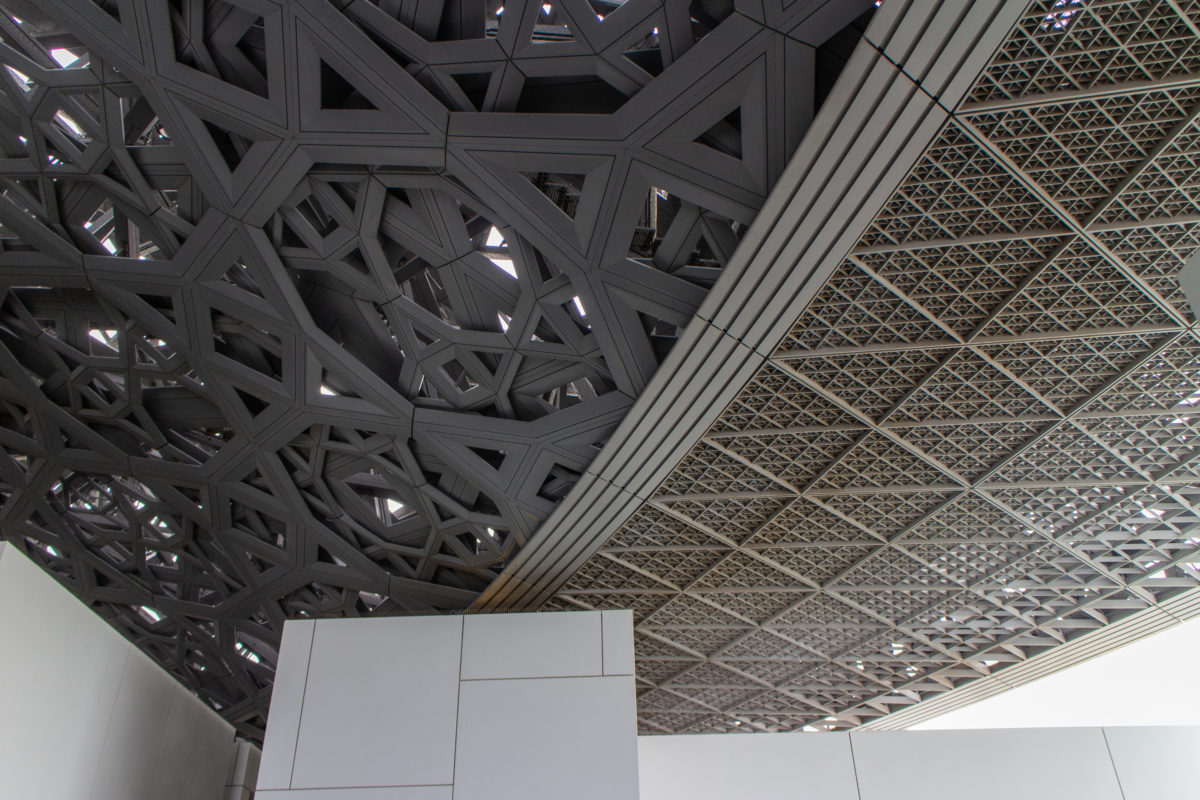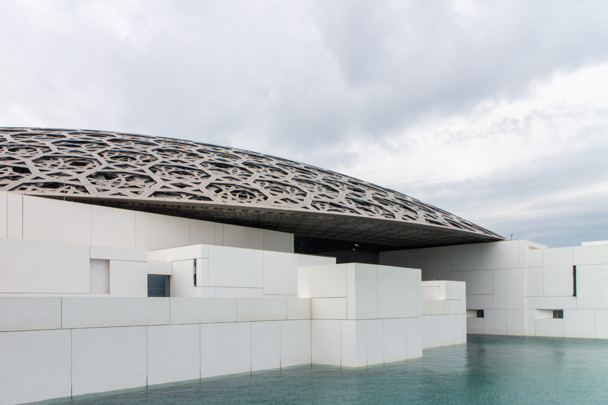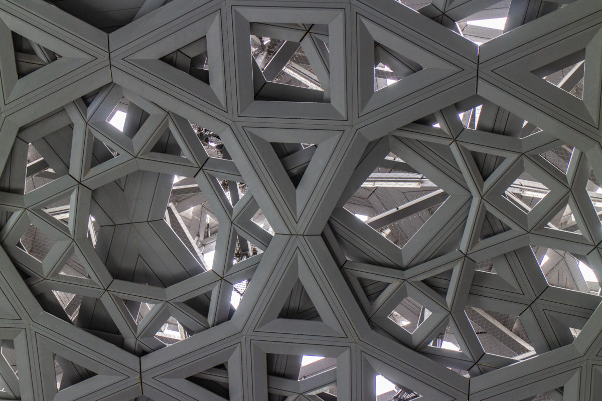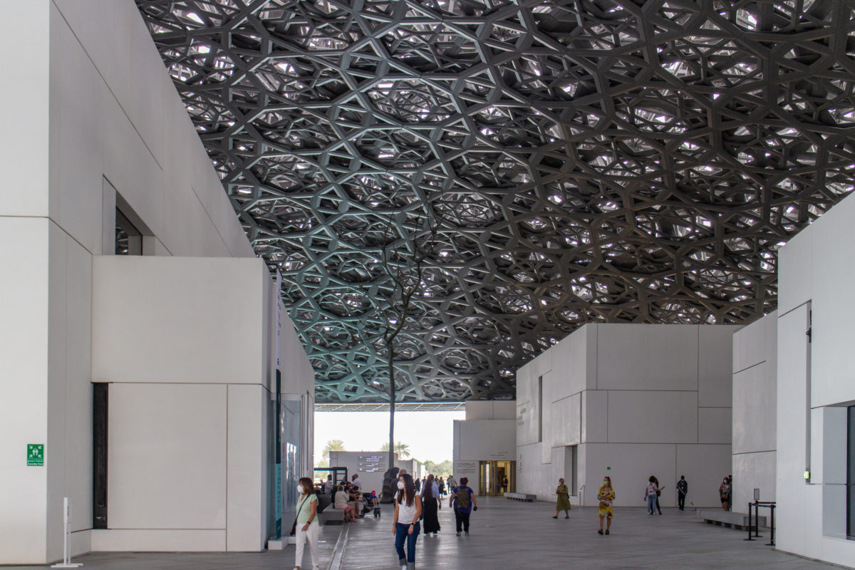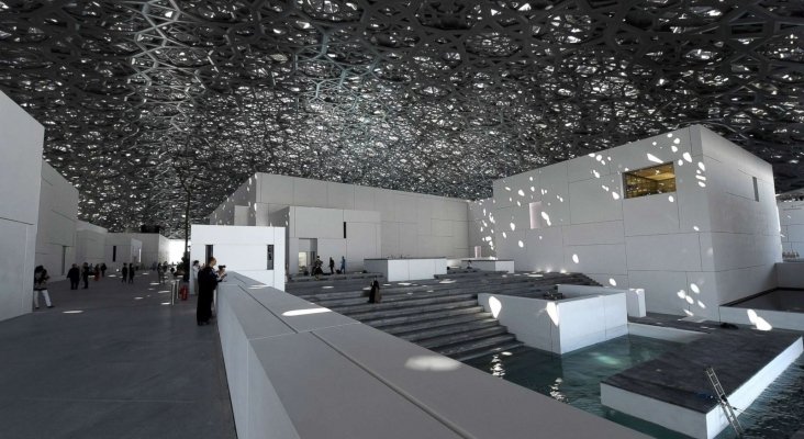 建築家ジャン・ヌーヴェルが アラブ諸国のために設計した新ルーヴル美術館を覆う巨大な幾何学模様のドーム。 この有名な美術館のフランス国外初の支店である。 博物館の計画は、 アブダビと フランスの政府間協定が結ばれた2007年に初めて発表された。 博物館は2017年11月11日に正式にオープンした。