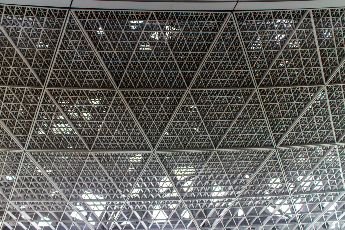 水平で完全な放射状の複雑な幾何学的構造で、11のユニークな形状の85の小さなフレームに細分化することで製造が簡素化され、それぞれの重量は30トンから70トンである。 これらの大きなジグソーパズルは、鉄骨建方専門業者によって現場で組み立てられ、プレートとボルトを使ってコアを接合した。 周囲はリングトラスで補強され、ドームが伸びるのを防ぎ、外側のサイドブレースを不要にしている。