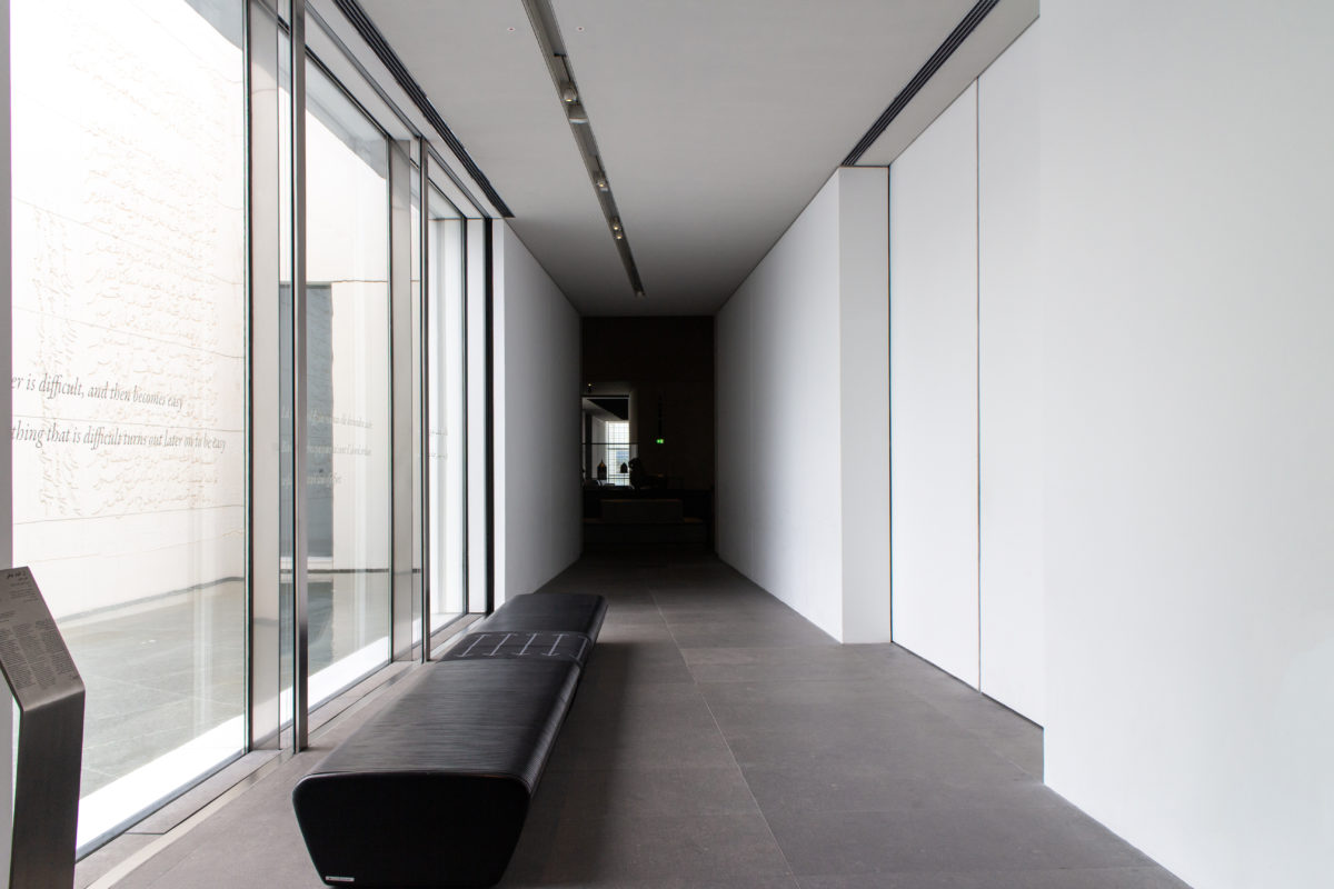 屋外の回廊では、休憩したり、作品について考えたり、議論したりすることができ、また、太陽、海、芸術、建築の絶え間なく変化する関係を楽しむこともできる。