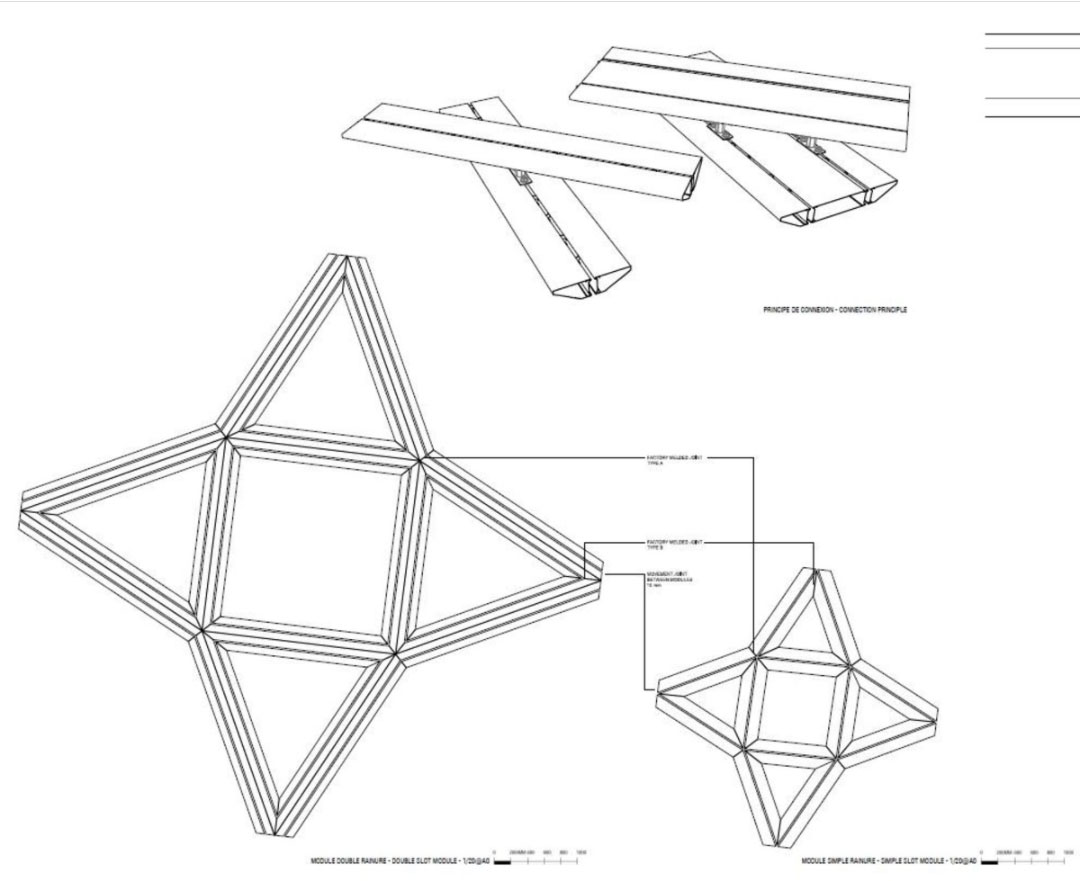 ドームの下のパビリオンは白いコンクリートで造られ、建物の外壁は平均20m2の超高性能ファイバーセメントのパネル3,900枚で覆われている。