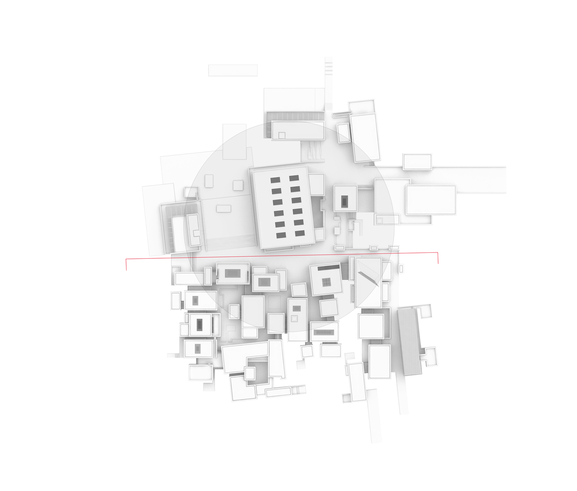 アラブのメディナの狭い通りを散策するように、この地域の低層住宅に建築的なインスピレーションを得た55棟、8600m2の建物を探索することができる。
