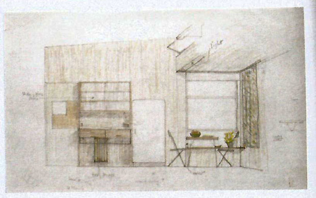 しばらくして、エジプト旅行の後、カーンはティンと共に暖炉の横に白と黒の壁画を完成させた。 反対側には、カーテン、不透明なガラス、木製の板が交互にはめ込まれた二重窓があり、オーナーは光の質や室内のプライバシーを積極的に調整することができた。 カーンは、木製の窓壁と石造りの壁との間の凹んだ接合部を「シャドージョイント」と呼んでいる。