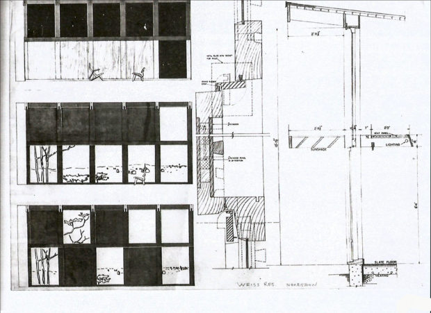 この設計は、建築家が修行時代に受けた影響と、イエール美術館の増築から始まる彼の円熟期を象徴することになる、設計に対する個人的な哲学とアプローチを追求するために、どのようにそれらと取り組んだかを示している。 ワイス・ハウスの建築に取り入れられた最も重要なポイントのひとつは、さまざまな位置から光と眺望を受動的・能動的にコントロールできる革新的な壁面窓システムである。