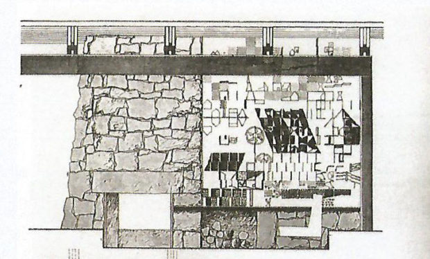 ルイス・カーンは家の基礎と構造に地元の石と木の梁を使った。 多くの場合、この構造はファサードの壁に同じ素材を使い、大きな窓を縁取ることで隠されている。 石造りの基礎の一部は、ガレージ・モジュールの平らになった部分に見られる。