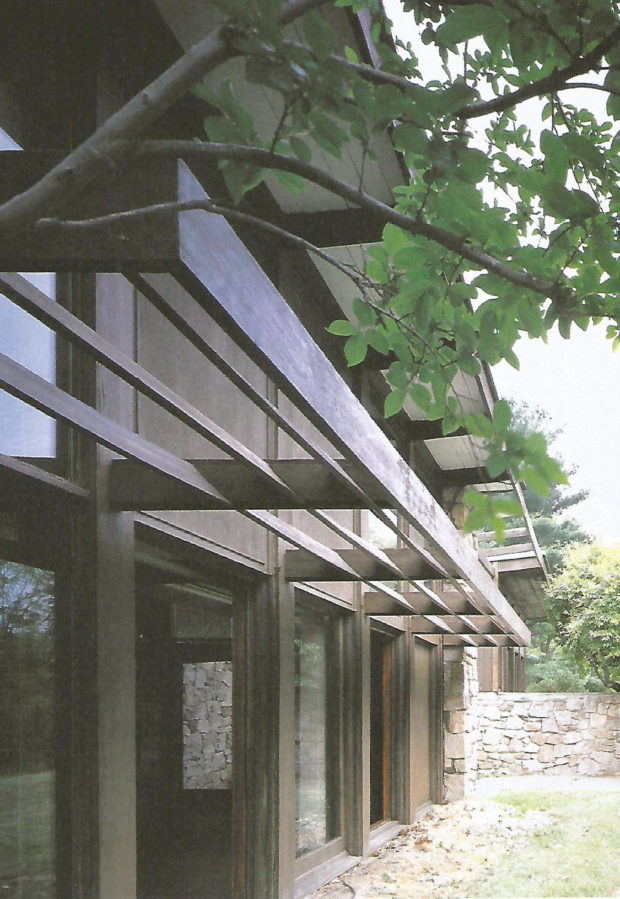 カーンはこの家の建設に当たり、壁に石材、外壁に木材という地元の材料を使用した。
