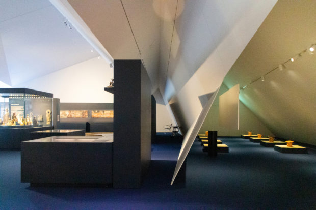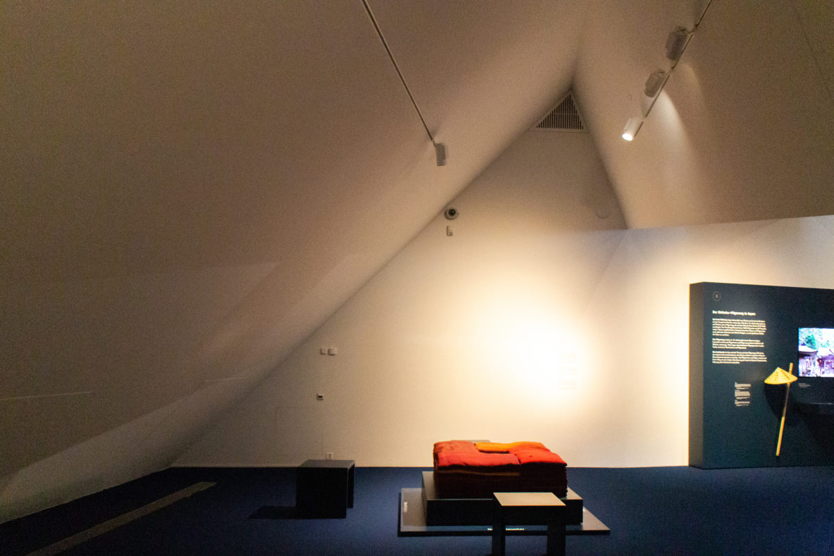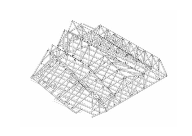 長さ29m、幅27m、高さ10.50mの巨大な屋根の上部構造は、表現力豊かにデザインされ、組み立てられ、屋根裏に追加の展示スペースを提供している。