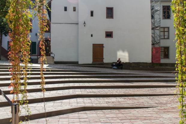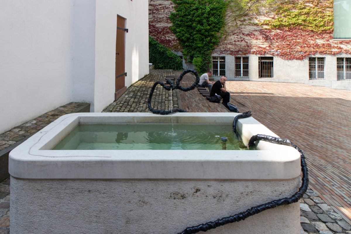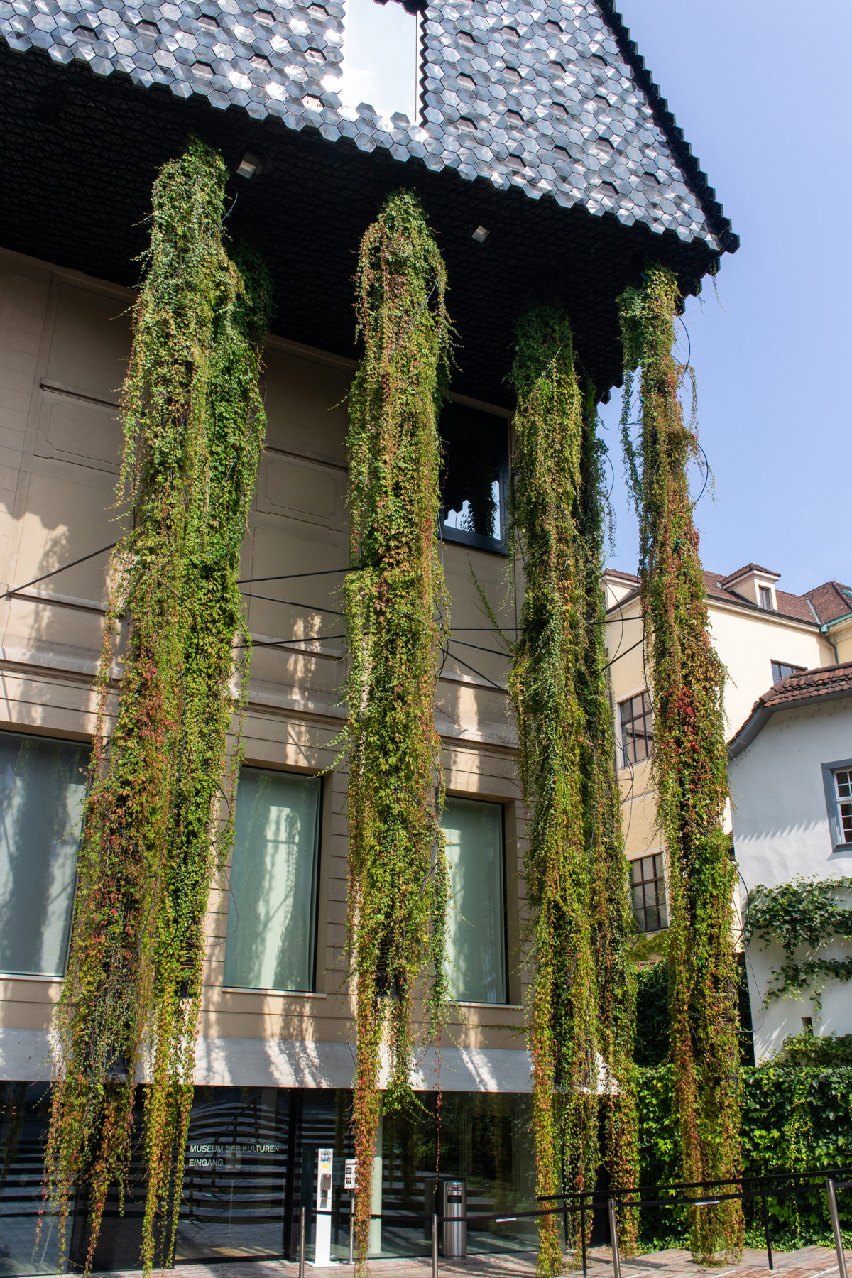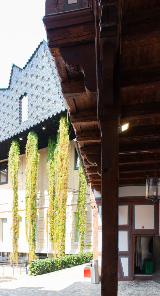 この中庭は、中世の建物の裏側の特徴的な “パッチワーク “のような形をしており、街の中心的な広場であるミュンスター広場の延長線上にあり、あらゆる種類の博物館活動や祝典のための社交場となっている。 その一部は低くなっており、幅が広くやや傾斜のある階段が博物館の入り口へと続いている。 吊るされた植物やつる植物が独特の雰囲気を醸し出し、屋根と相まって新たなアイデンティティを生み出している。