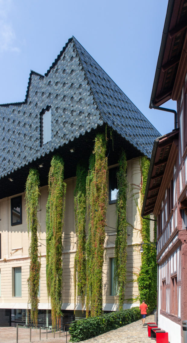 2011年以来、バーゼル市立文化博物館(MKB)の印象的な屋根は、狭い路地と角度のついた屋根が並ぶバーゼルの歴史的な街並みに特別なアクセントを加えている。