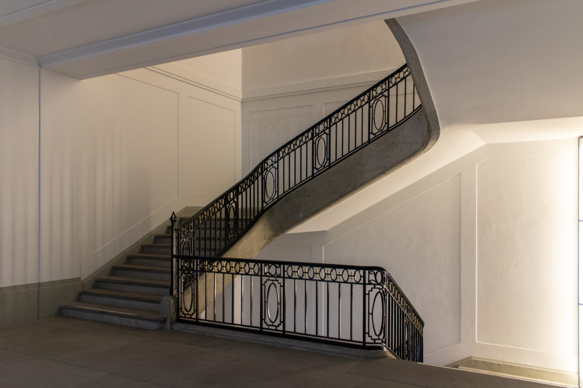 ギャラリーの改装は、全体的に同様の原則に従って行われた。 古い部屋には古典主義的な格天井があり、後に増築された部屋には一方通行のコンクリート梁がある。 部屋の元の構造を復元するため、偽の天井は取り除かれ、技術サービスは既存の建築要素にできるだけ目立たないように統合された。