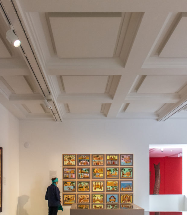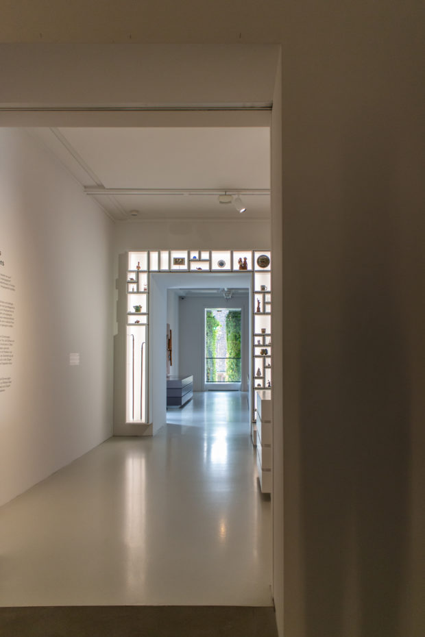 ギャラリーの3つのフロアは、同じパターンで部屋が並んでいる。 1階のエントランスの真上には、中庭を見渡せる片側に窓のある大きな部屋がある。 その上、天井を取り払い、狭い窓のある2階建ての部屋を作り、そこにコレクションの中で最も大きなものを展示できるようにした。 この部屋は博物館内のオリエンテーションルームにもなっており、来館者はここから下を見下ろすことができる。