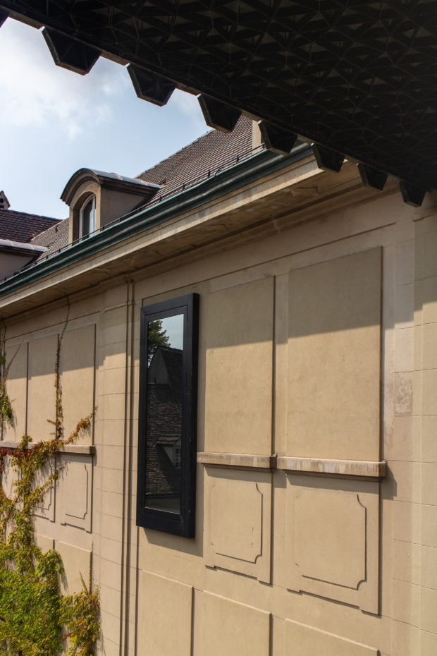 博物館は、のどかな中庭を囲むように、さまざまな建物が並んでいる。 左と右には、中世からの建造物で現在はオフィスとレストランがあり、その奥にはスイス人建築家メルキオール・ベリが手がけた古典主義建築がある。