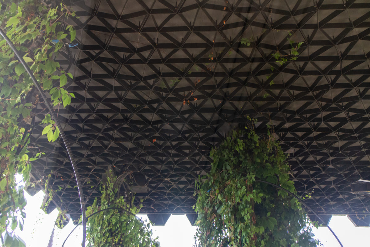 新しい屋根の蒸気バリアと断熱材は、鉄骨構造の外側に配置されている。 屋根の断熱層はスタンディング・シーム・シートメタル・ルーフで構成されている。 セラミック・タイルの露出した屋根は装飾に過ぎない。
