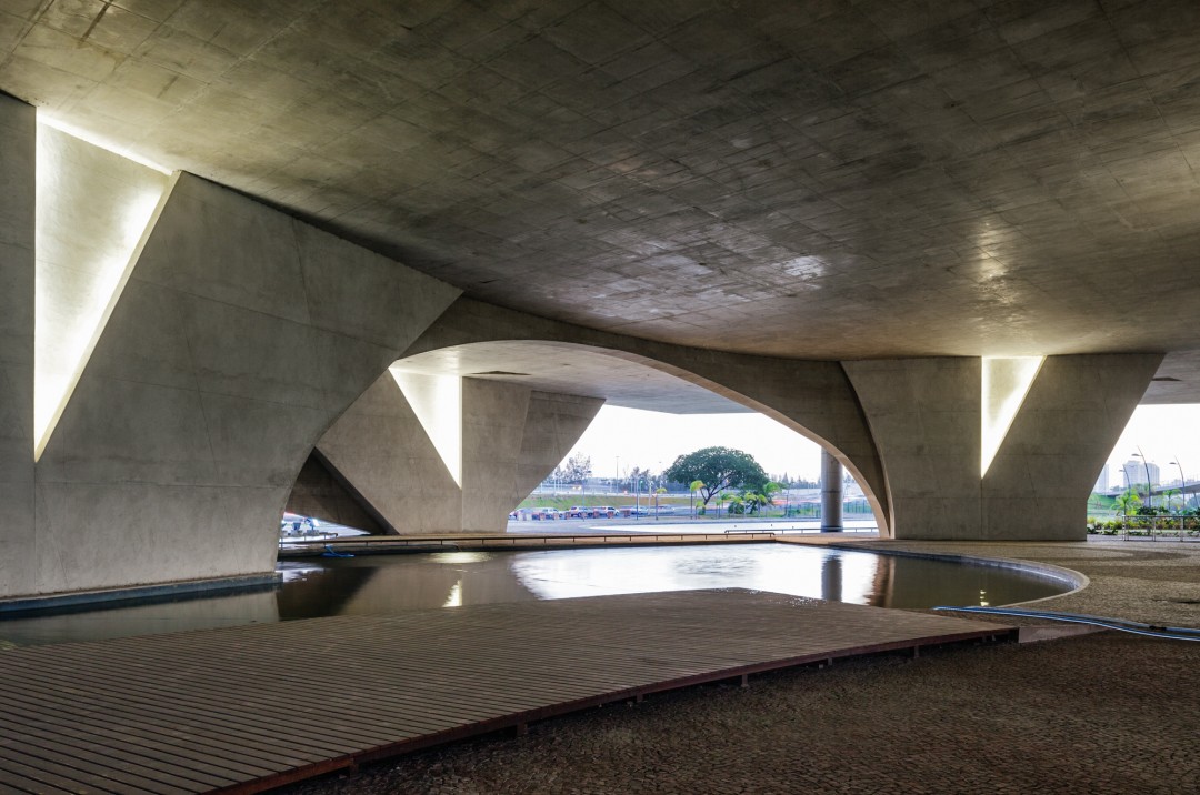 これは建築家の最初のプロジェクトである。 クリスチャン・ポートザンパルク で ブラジル また、ブラジルで最も有名な建築家たちへのオマージュでもある。 オスカー・ニーマイヤー大きなオープンスペース、彫刻のような柱やスロープ、むき出しのコンクリートの多用、建物全体に広がる光と影の見事な戯れなど、ブラジル建築の典型をデザインに取り入れることによって。
