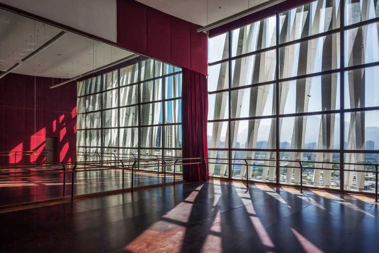 ブラジル交響楽団の本拠地であるシダーデ・ダス・アルテスは、まるで大邸宅のようで、街を見下ろす大きなテラスは、ブラジル建築の原型へのオマージュである。