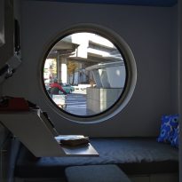 カプセルの外装は、1×2mまたは2×3mの亜鉛メッキ鋼板パネルで構成されている。 これらの措置は、すべてのカプセルを製造するのに必要なパネルの数と、カプセルを製造する工場の小ささによるものである。 亜鉛メッキのスチール・パネルは、カビの発生や腐食を防ぐために、塗料とケニテックスという光沢のあるスプレーで処理された。
