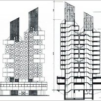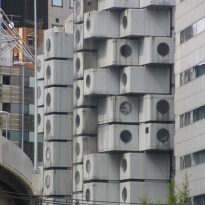長銀カプセルタワーは、カプセル住居のアイデアに基づき、1972年に建設された最初の建物である。 建築家の黒川紀章は、このプロジェクトを、プレハブの居住モジュールを挿入する巨大構造として構想し、そのデザインを通して、建築作品における交換可能性、リサイクル可能性、持続可能性のアイデアを実証した。