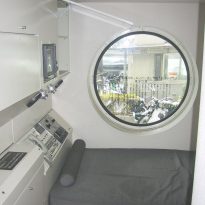 カプセルはスチールボックスで構成され、防錆処理とケニテックススプレーコーティングが施された強化亜鉛メッキ鋼板パネルで仕上げられている。
