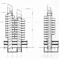 建物の法的安全要件が満たされただけでなく、火災時の避難経路も確保された。 垂直通信コアを2つ持つ利点は、逃げ道が増えることだった。 階段のコアはさまざまな箇所で接合され、2つがつながったフロアと独立したフロアが作られた。