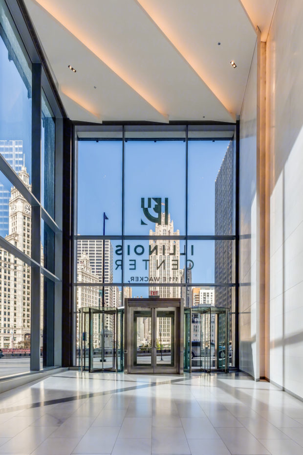 ゲッチ・パートナーズの設計によるロビーは、2,500万ドルをかけて改装され、233 N Michigan(Two Illinois Center)と111 E Wacker(One Illinois Center)をつなぐことで、イリノイ・センターの美しさをさらに引き立てた。 この改修には、複合施設を構成する他の建物と共有する屋外スペースのほか、自転車置き場、カフェ・レストラン、2つのジム、雑貨店などが含まれる。