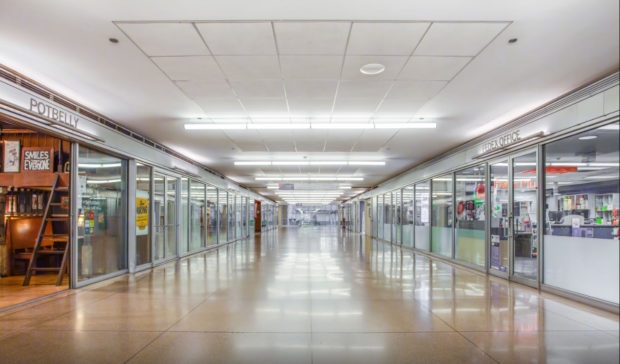 40の屋台が並ぶ頑丈な地下通路は、テナントや地元の歩行者のために、商業サービスの包括的なコミュニティを作り出している。 コンコースには、複数のファーストフード店、ヘアサロンや理髪店、靴の修理、フェデックス、アマゾン・ゴー、複数の信用組合や金融サービスなど、さまざまな施設がある。 この遊歩道は4つの異なるホテルに接続し、EI線とメトラ線にアクセスできる。