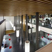 この幸福なコラボレーションの証は、プロジェクトの各フロアに反映されている。各フロアは、建物全体との一体的な読解を達成することを最優先の目的として構想され、さまざまな専門的・文化的活動を受け入れるべき「カレッジ・スペース」としての地位を強調するような形になっている。