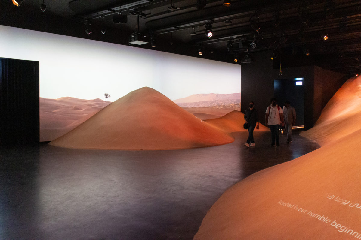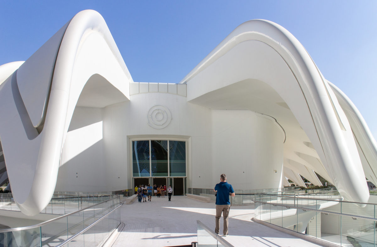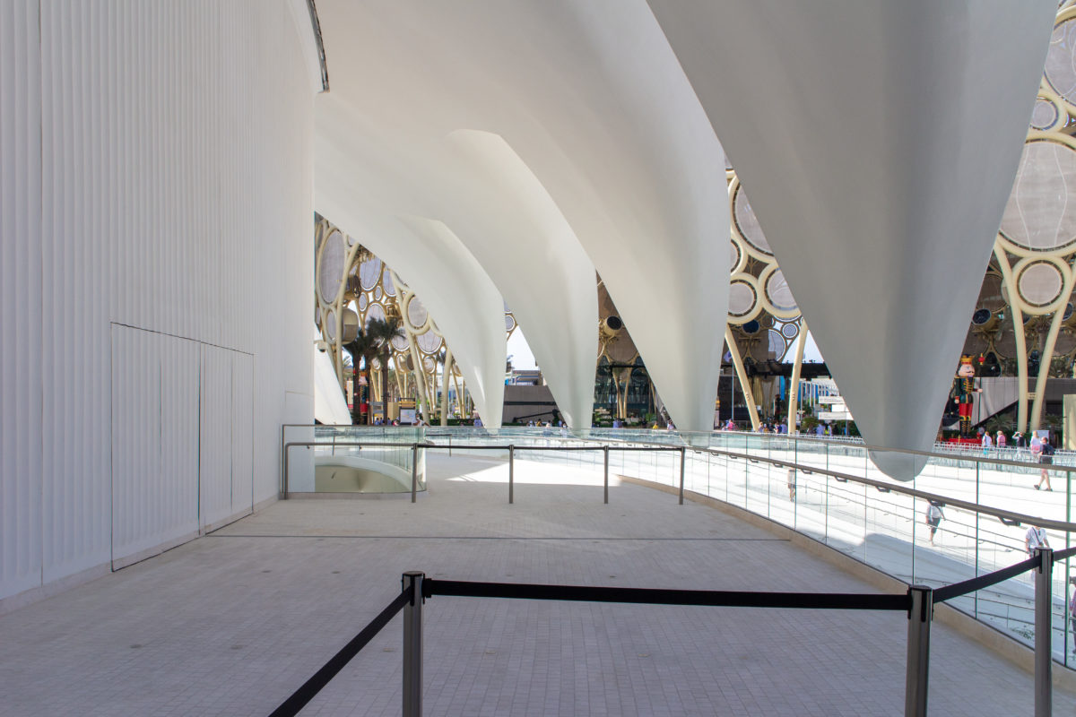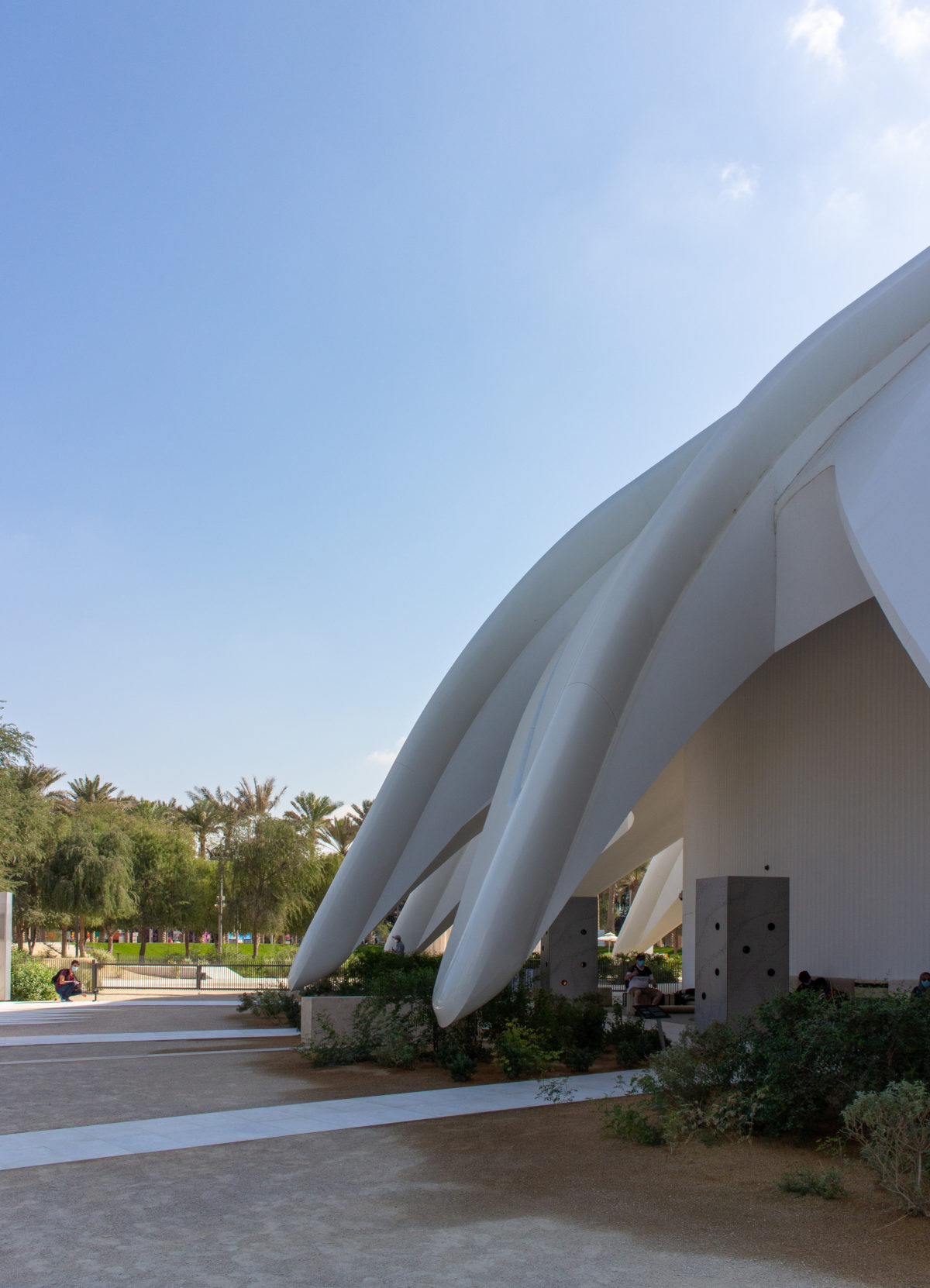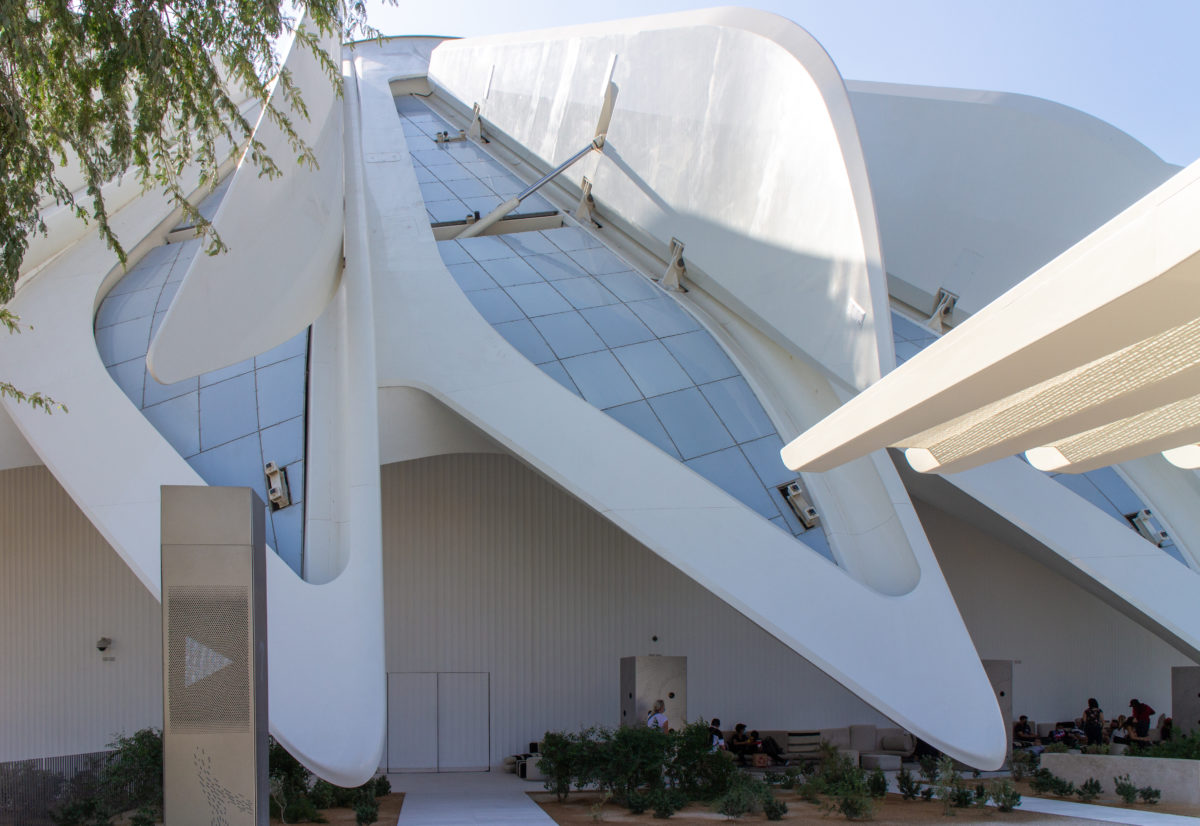 スペイン人建築家のデザインは、建築物から周囲の景観に至るまで、開催国を代表するものだ。 このプロジェクトは、アラブ首長国連邦の歴史、文化、革新性を来館者に紹介することを目的としている。 この国家的モニュメントは、建築的にも、統合された映画的機能を通じても、訪問者に没入的で多感覚的な体験をもたらし、エミレーツの歴史、文化、未来的革新を紹介するように構成されている。