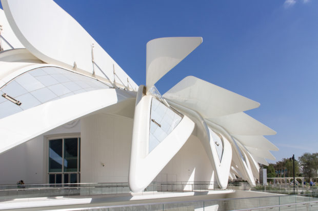 「コンセプトの骨格は、アラブ首長国連邦の国鳥であるハヤブサの優雅さと力強さにインスピレーションを得たものです」とカラトラバのスタジオはコメントしている。