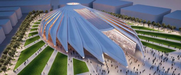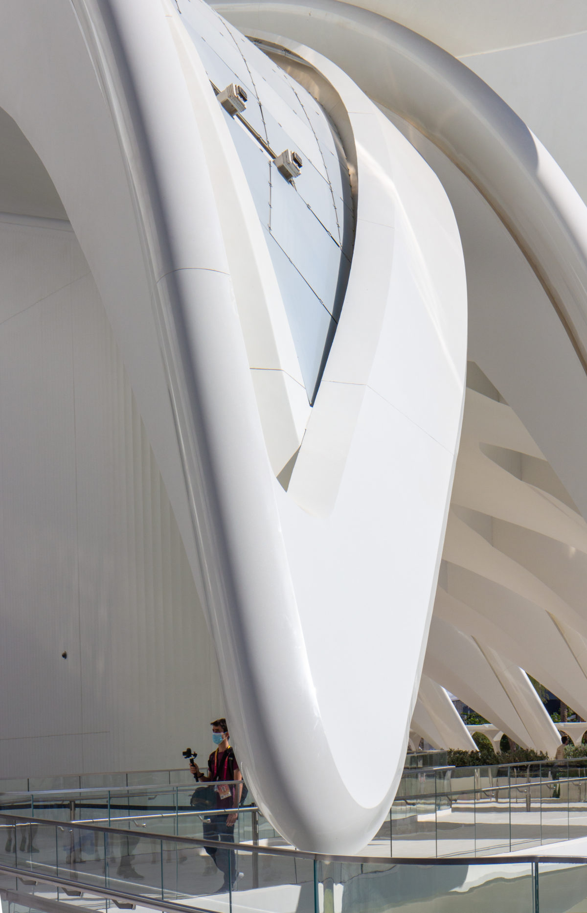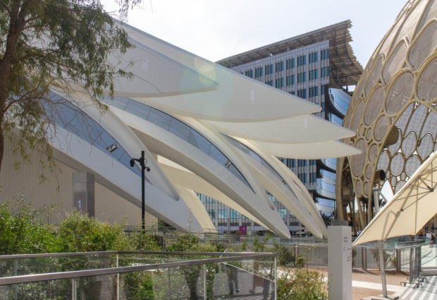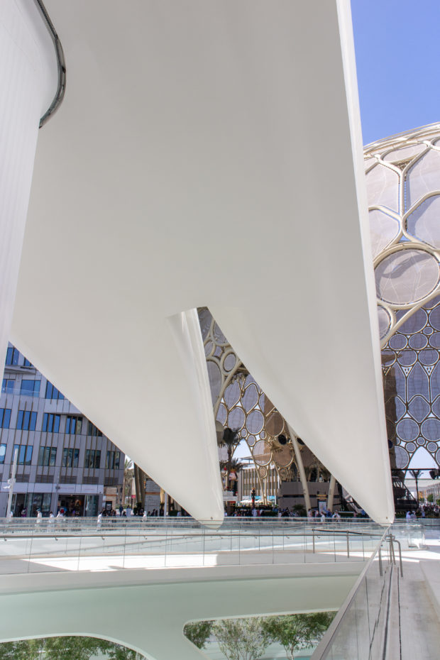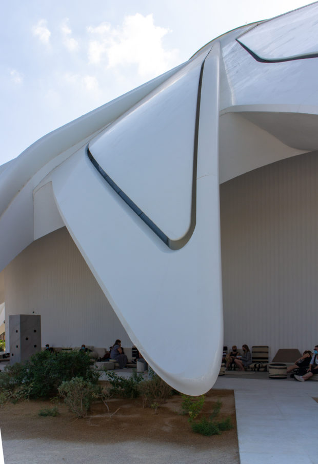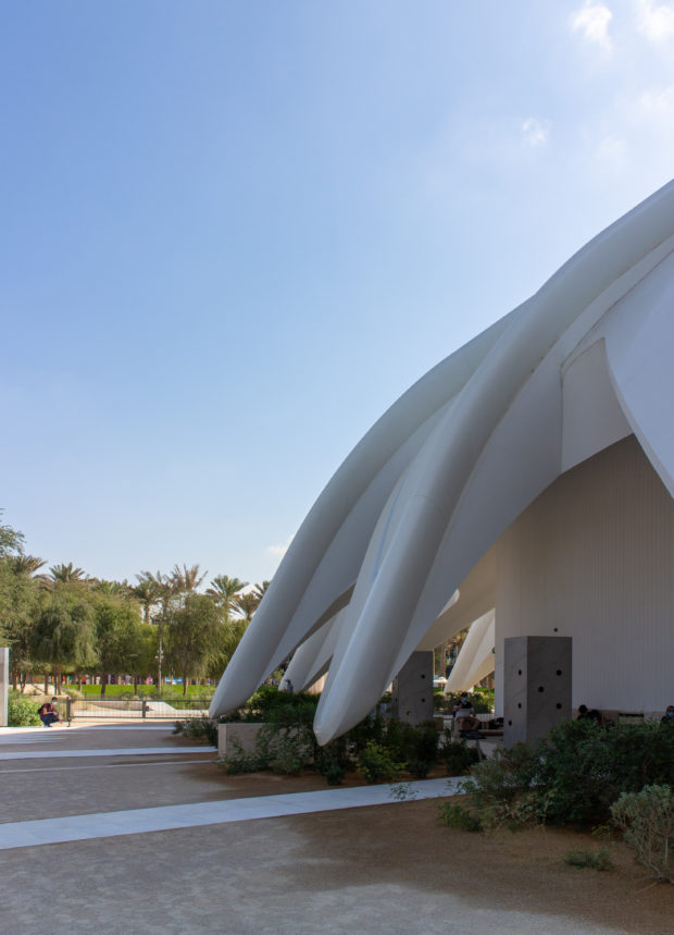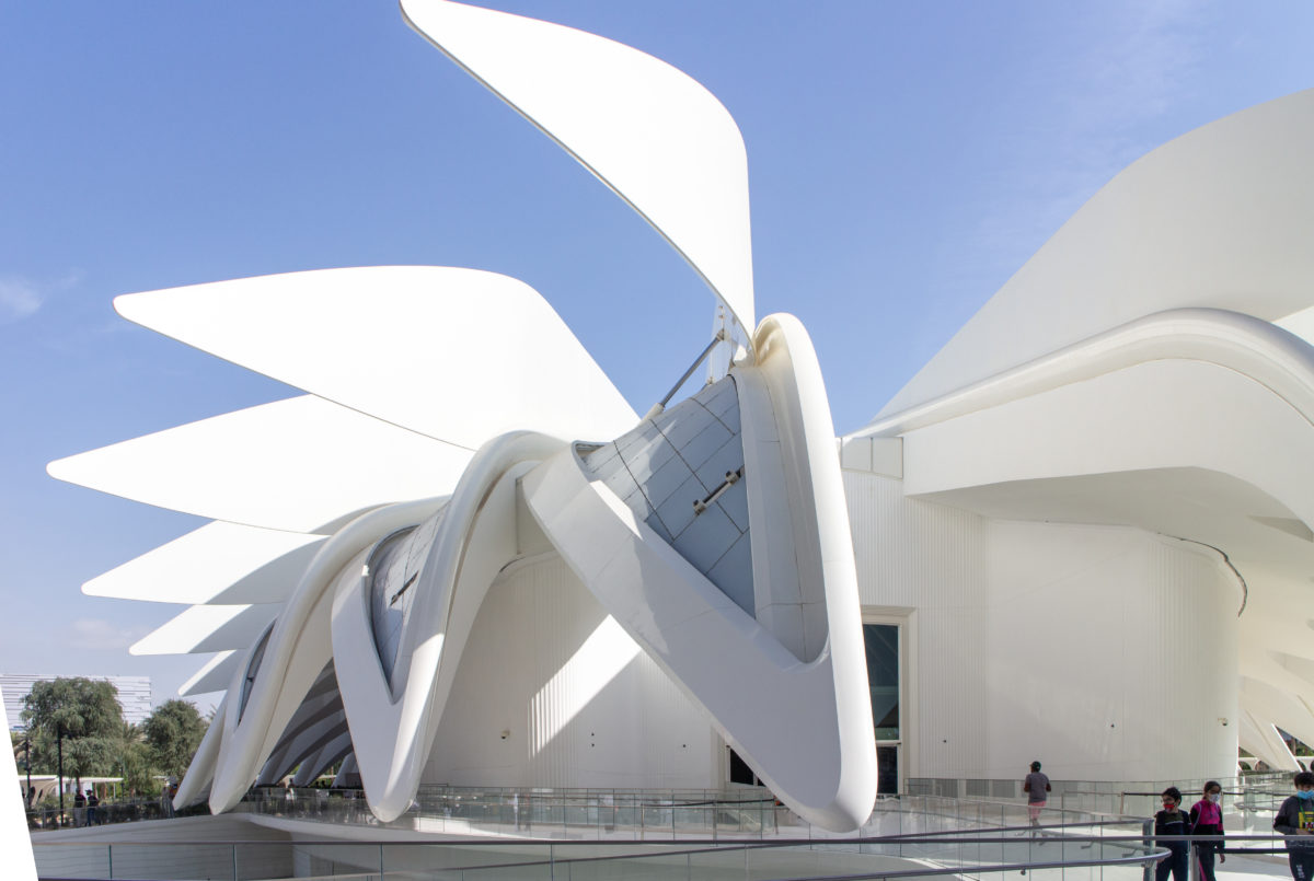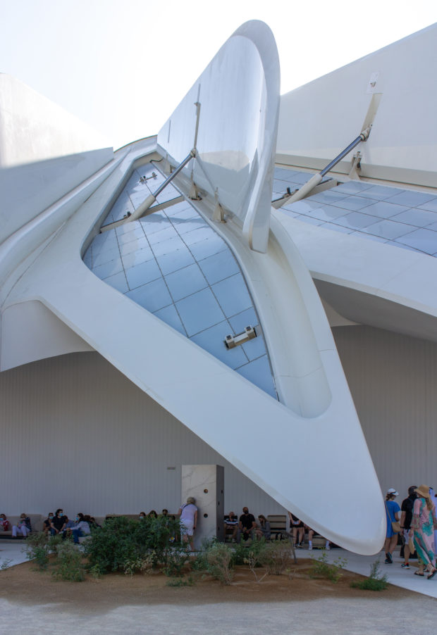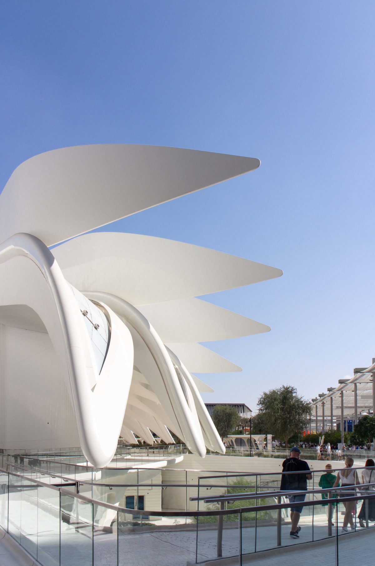 「…UAEパビリオンのデザインは、エミレーツのアイデンティティとパイオニア精神を反映し、国の過去、現在、未来のバランスの取れたつながりを培っている…」(S.カラトラバ氏)