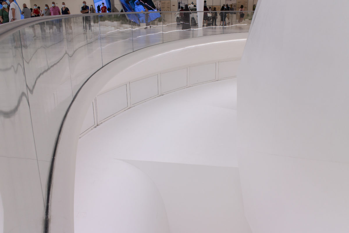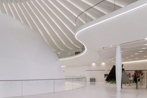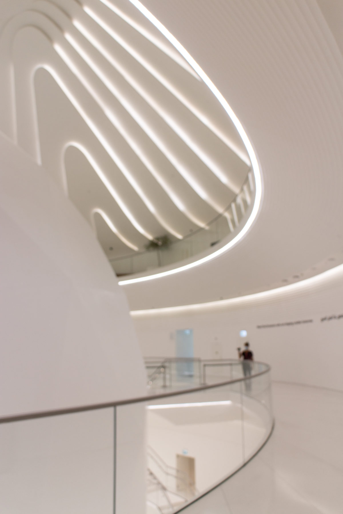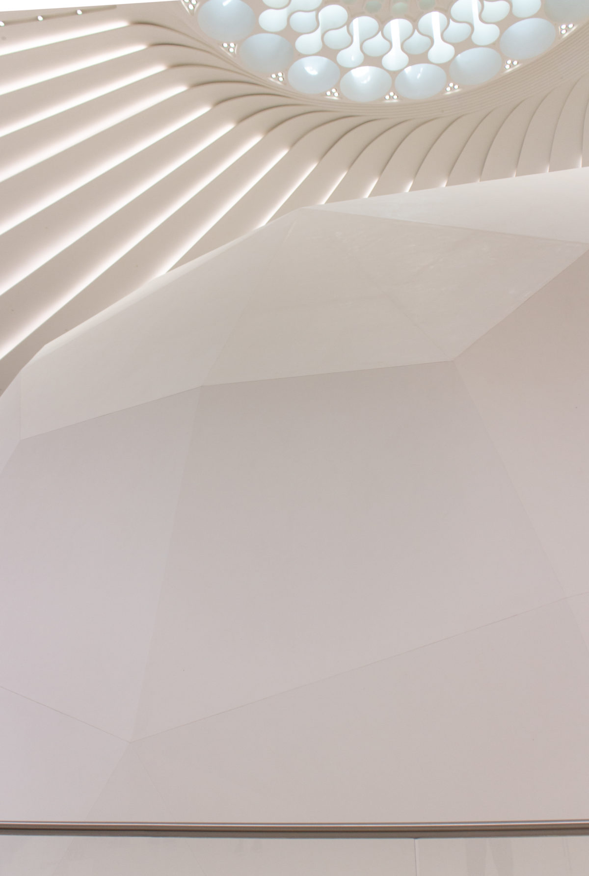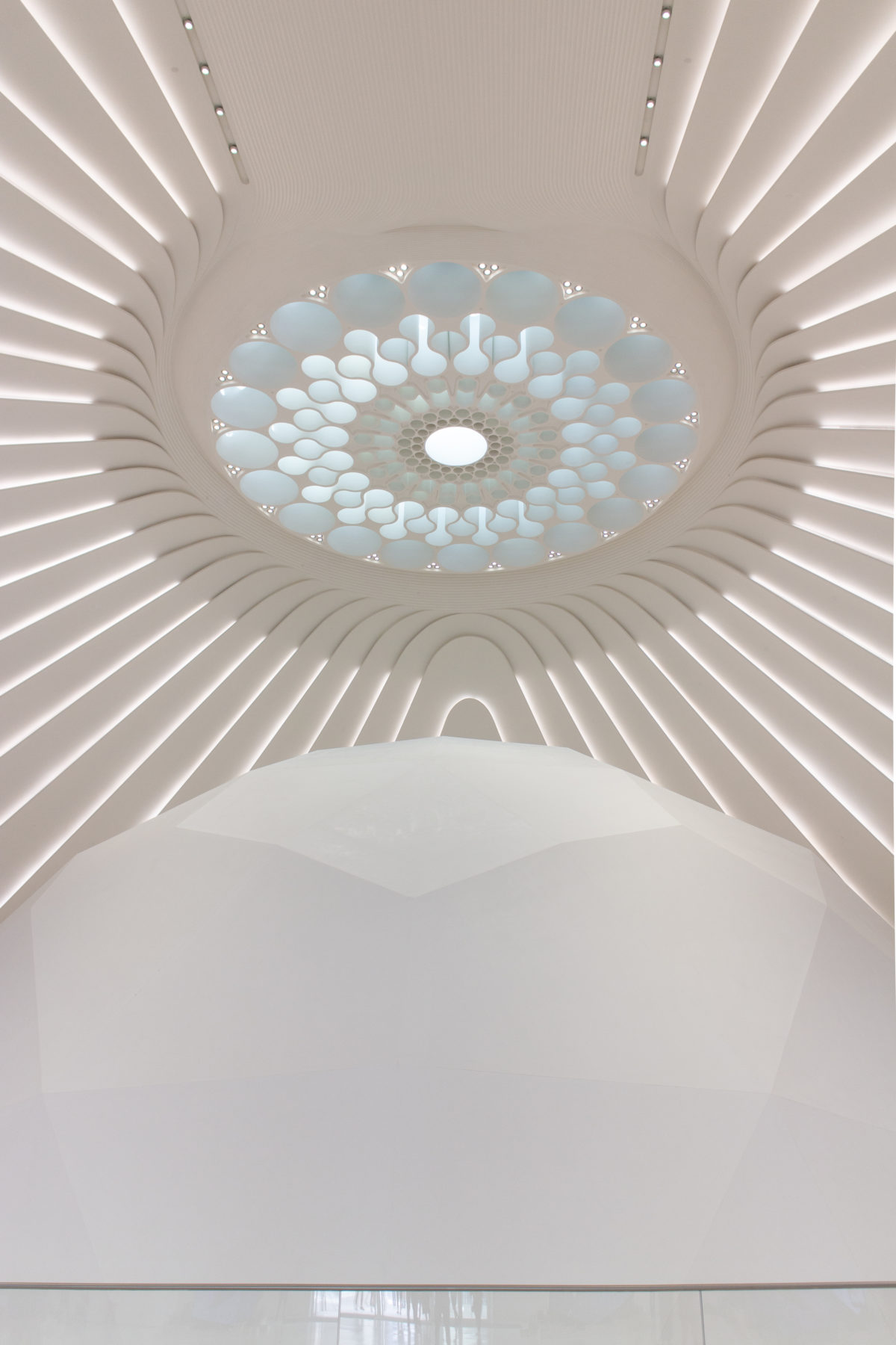 高さ27.8mのパビリオンは、敷地面積15,000m²、建築面積19,200m²。 内部は、クリーンで未来的でありながら有機的な宇宙の雰囲気に包まれている。