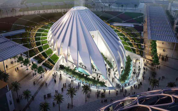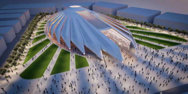 の再生可能エネルギー企業マスダールが監修したデザイン・コンペティションに続いて行われた。 アブダビ世界有数の建築事務所によるプレゼンテーションを7ヶ月にわたって実施した。 アラブ首長国連邦 (UAE)の提案を採用した。 サンティアゴ・カラトラブ2020年ドバイ万博のUAEパビリオン。 世界で最も有名な9つの建築事務所が11のコンセプトを発表した。 各コンセプトは、2020年万博のメインテーマである「心をつなぎ、未来を創る」をどれだけ表現できているか、UAEらしさが感じられるか、国の過去と未来のバランスがとれているかなどが評価された。